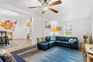 2 Bedrooms • 1 Bathroom 1 Bath • Sleeps 2-4Mermaid on Murray is a thoughtfully designed 2-bedroom, 1-bath home that blends charm with comfort. Each bedroom features a queen bed with fresh linens and cozy touches making it ideal for two couples or a small group of friends.